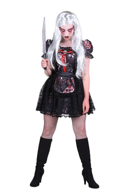 Een populair thema binnen de horror kleding is The day of the dead. De dag van de doden komt over uit Mexico en is een herdenkingsdag, deze traditie wordt gevierd op 1 en 2 november en is inmiddels ook naar Amerika en andere landen overgewaaid. Het feest is ontstaan uit het vereren van de doden en ziet er voor buitenstaanders soms wat luguber uit, vandaar dit dit thema uitermate geschikt is voor het Halloween thema. We hebben leuke Day of the Dead jurkjes in rood en roze maar ook het Mexican skull jurkje en zeer fraaie Day of the Dead maskers en half maskers. Natuurlijk kun je ook met schmink je gezicht in de stijl van het thema schminken.