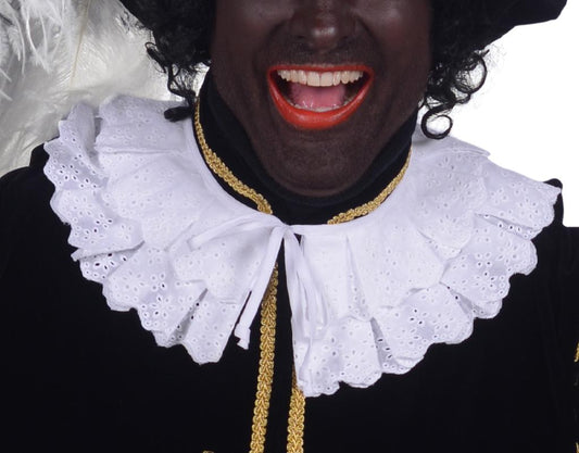 De mooiste Pietenkragen kun je online bestellen, we hebben een zeer goede, goedkope dubbele pietenkraag met elastiek om de hals al voor €4,95. Wil je net its mooier dan kun je kiezen voor een enkele of dubbele kraag met prachtig kant. De strik van de kraag wordt meestal aan de voorkant gedragen. Bij deze kragen is het belangrijk dat deze wordt vast gezet aan het kostuum, bijvoorbeeld met een klein speldje omdat anders de strik kan gaan draaien en niet meer in het midden zit.We hebben ook een geweldige set met kraag en bijpassende manchetten, dit is ook qua prijs een absolute aanrader.