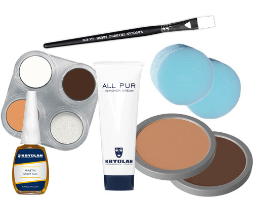 Wij hebben Kryolan pietenschmink in 3 basiskleuren, namelijk lichtbruin, donkerbruin en zwart. Het is aan een ieder welke kleur je de Piet wilt geven, dit kan natuurlijk ook best roetveeg zijn, ook daarvoor zijn genoemde kleuren geschikt. Meest gebruikte kleur om te schminken tegenwoordig is de licht-bruine schmink van Kryolan nr 101. Voordeel van een lichtbruine kleur is dat de gezichtsuitdrukking goed te zien blijft en het komt wat vriendelijker over dan een hele donkere kleur. Nadeel is dat je gezicht goed zichtbaar blijft en je bent dus meer herkenbaar. Een tussenoplossing is de 102 van Kryolan. Voordeel van waterschmink is dat het zeer eenvoudig werkt. Schmink van Kryolan hecht uitstekend op een droge huid, blijft prima zitten en is ook nog eens goed te verwijderen. Tegenwoordig worden de meeste pieten geschminkt als roetveegpiet, daarvoor hebben we een speciale set van Grimas met een licht bruine onderlaag, de W8 cake make up.