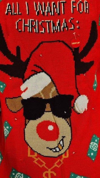 Kersttrui met gekleurde lampjes - All I want for Christmas