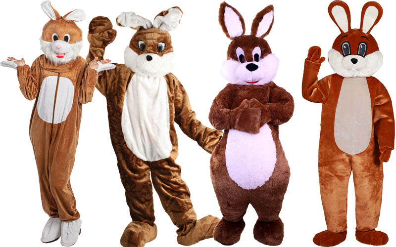 Konijnenpak mascotte bruin: een betaalbaar mascottepak met een vriendelijk konijnenmasker, echt een bestseller!