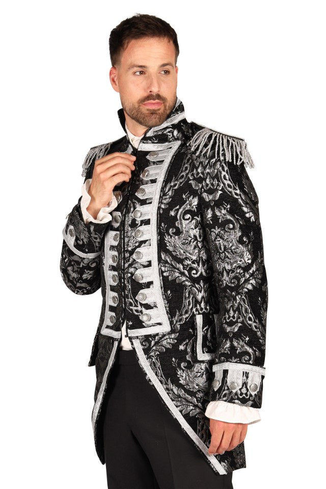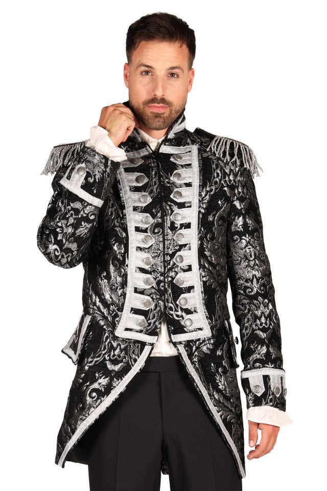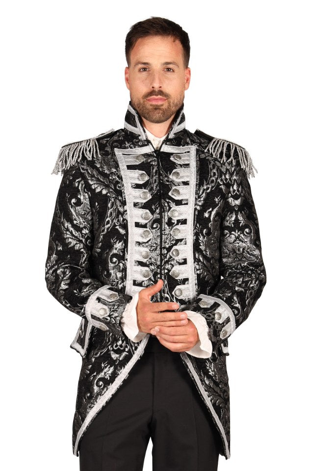 De Nelson Brokaat jas in zwart met zilveris de perfecte keuze voor heren die op zoek zijn naar een luxe en chique outfit voor carnaval. De prachtige combinatie van zwart en zilver zorgt voor een echte carnavalsuitstraling.