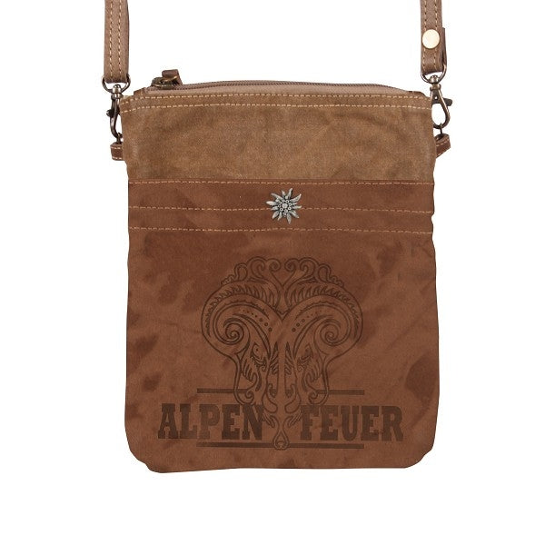 Oktoberfeest tasje vintage look buin met rits sluiting en edelweiss versiering