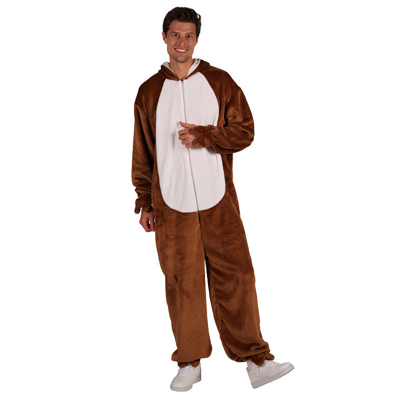 - Paardenkostuum onesie in bruin met wit