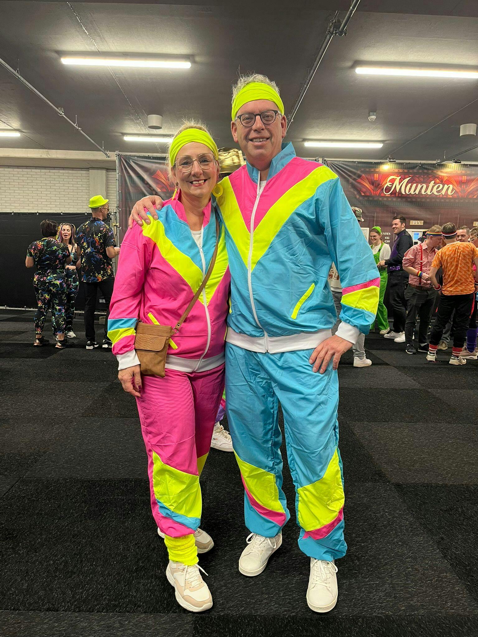 Heb je binnenkort een fout feestje en wil in jaren 80 en 90 stijl verkleed, dan is dit roze dames trainingspak een perfecte keuze. Het pak dat bestaat uit de broek en het trainingsjack heeft ook nog eens echte zakken en er zijn van dit model ook herenpakken in andere kleuren (blauw en paars), een ideale mogelijkheid om als setje naar het feestje te gaan. Vergeet niet de neon zweetbandenset er bij te bestellen. Maak de set compleet met een heuptasje of een opblaasbare radio.