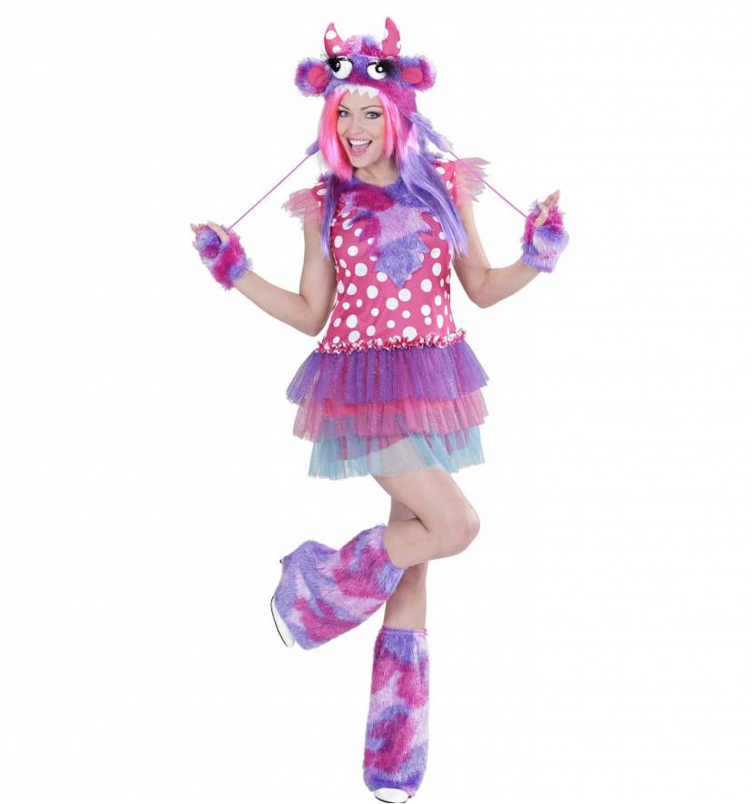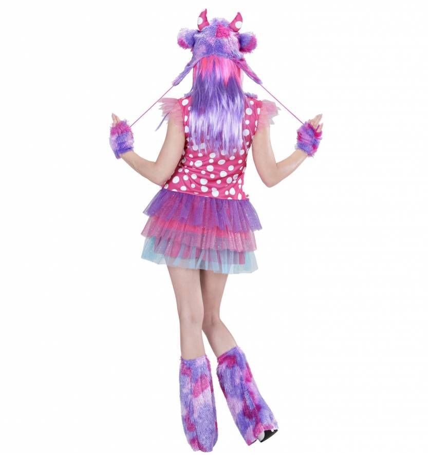 Het Roze Monstermeisje is eerder schattig dan eng, het monstermeisje pakje bestaat uit het jurkje, de muts, handschoenen en beenwarmers, een perfect kostuum om verkleed op pad te gaan naar welk feest dan ook