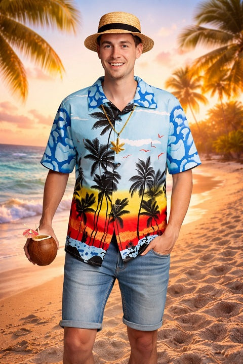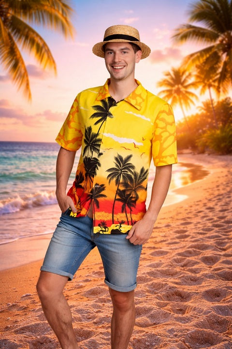 Kleurrijke en zonnige Hawaii shirts en blouses vol met afbeeldingen van stranden, palmbomen en zonnige taferelen. Perfect voor tropische feesten en zomerse evenementen.